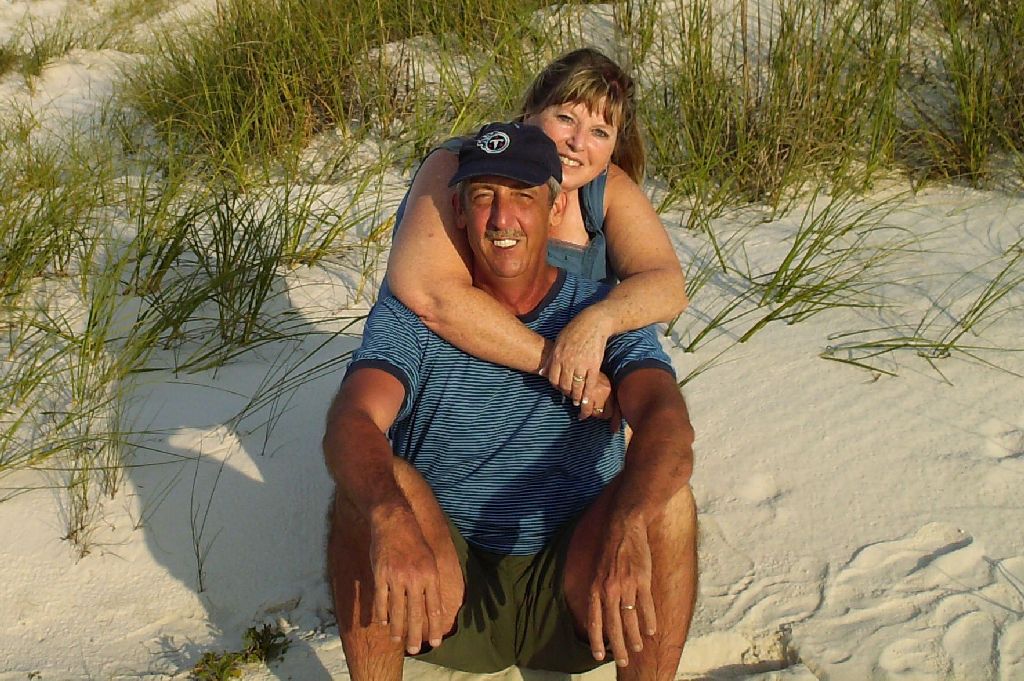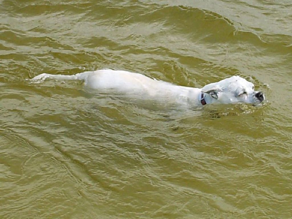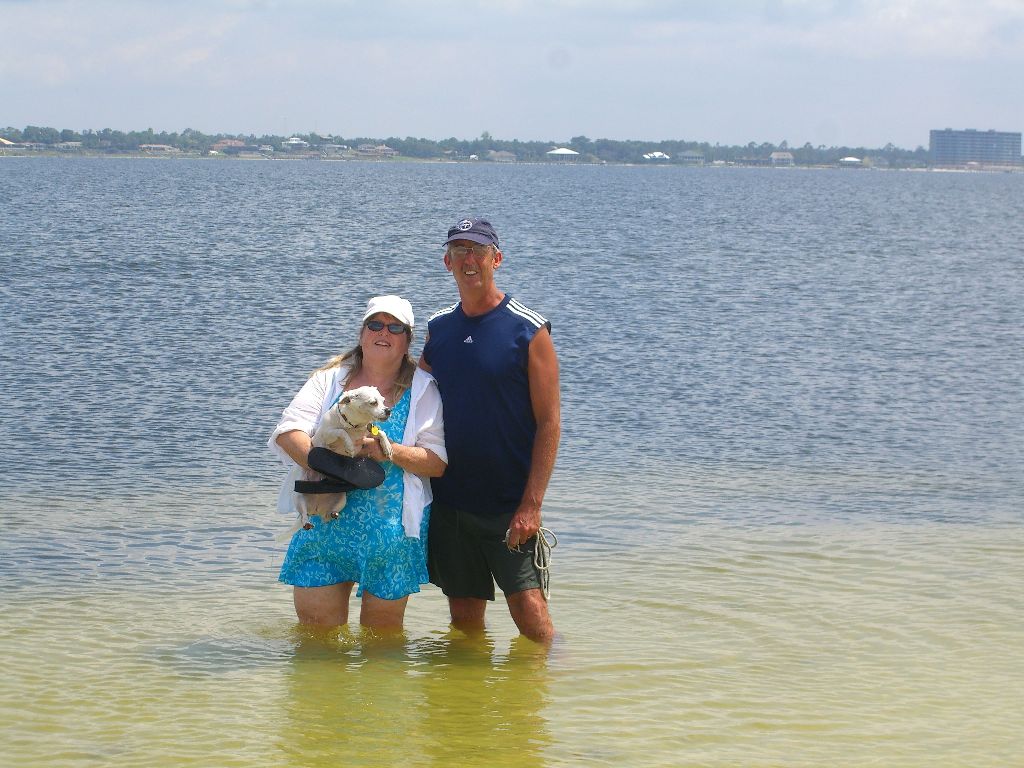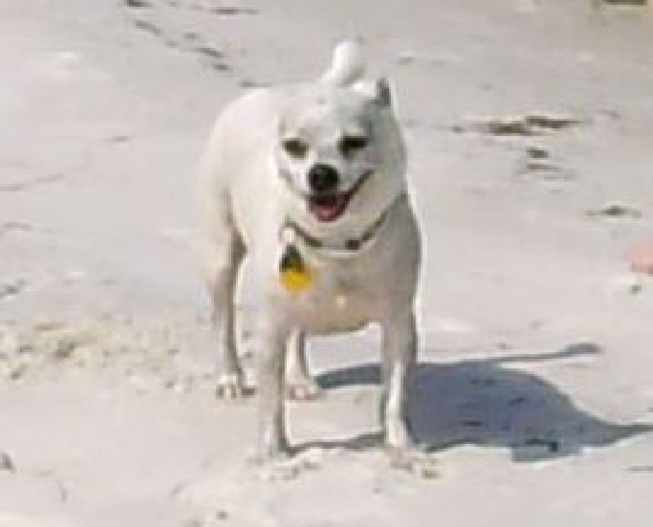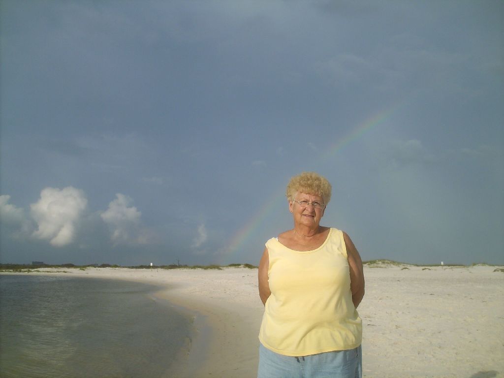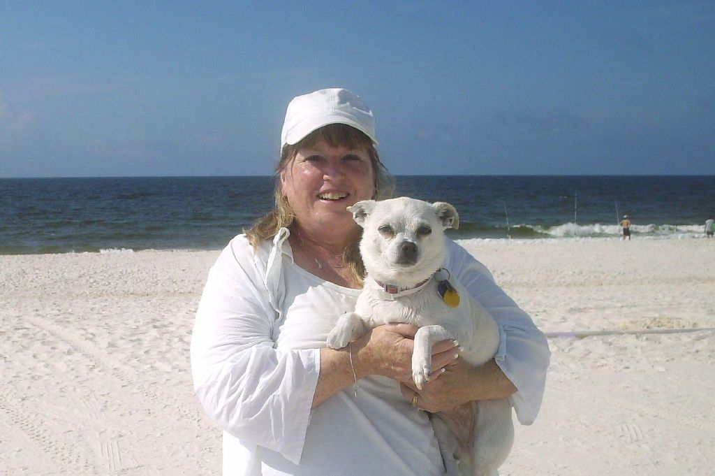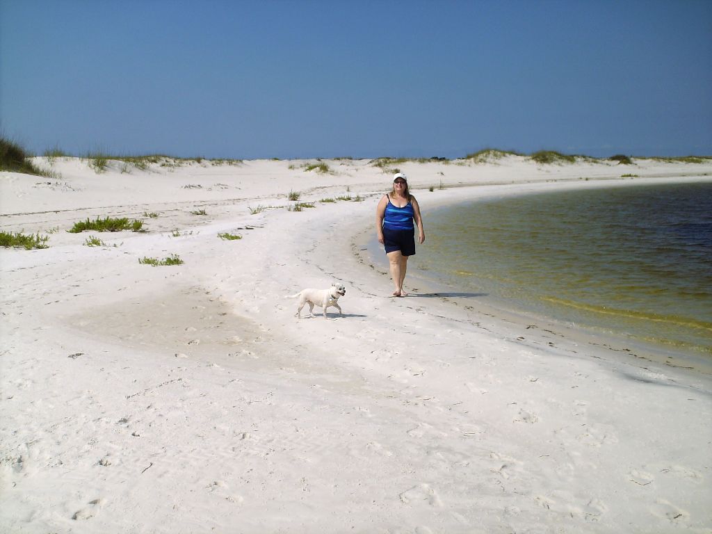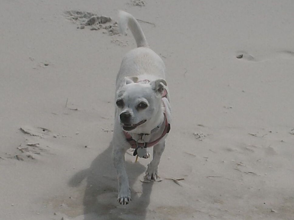 Jewel smiling -- enjoying a swim and a stroll on the beach.