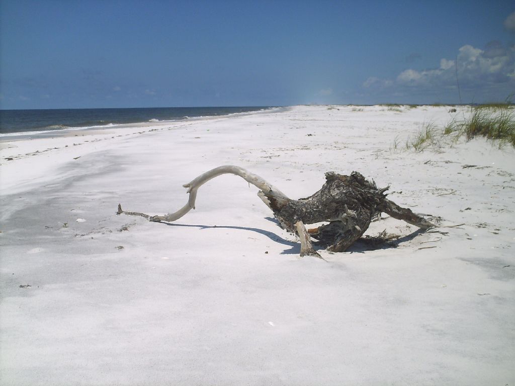 Driftwood at the eastern tip of Perdido Key Island. Notice in the extreme distance is the city of Perdido Key. You can just barely make out buildings. I now have 5 miles to travel back to my starting point.
