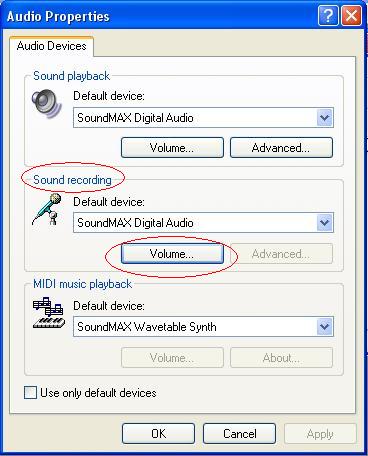 In the middle rectangle labeled Sound Recording, click Volume, as shown below.