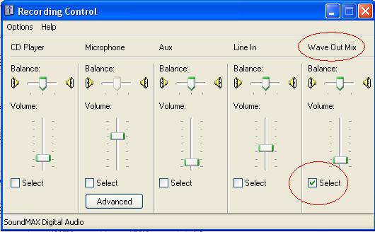 Then make sure the "Stereo Mix" or "Wave Out Mix" button is checked. It's ok to check all of these here, but make sure the "Stereo Mix" or "Wave Out Mix" is checked. (Also, for other purposes, make sure the Microphone square is checked, so that later, if you want to record using a microphone plugged into the back of your computer, you can switch over to that. But it's not important right now.)